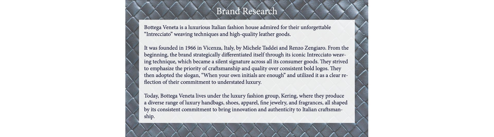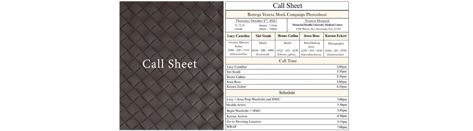 A campaign created to reflect Bottega Veneta’s core values of authenticity, intention, and luxury. Through thoughtful creative direction and styling techniques, this project focuses on expressing the brand's minimalistic but sophisticated approach to design. The opportunity to research the brand in depth allowed Lucy to gain a strong understanding of Bottega Veneta’s visual language, brand identity, and design philosophy, making it a valuable learning experience that shaped her creative approach.